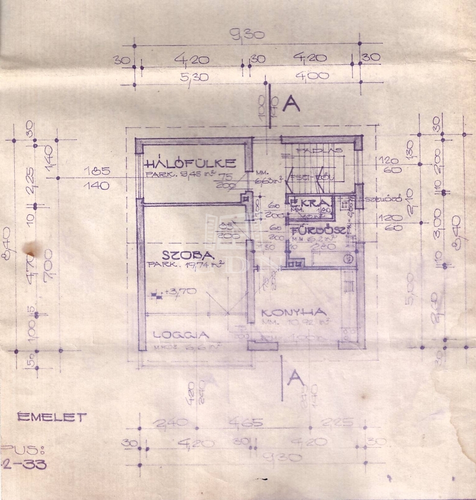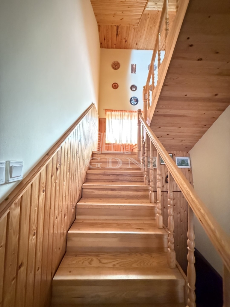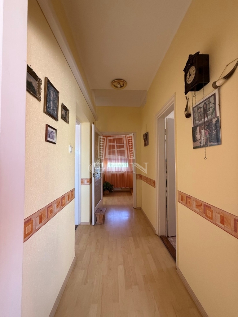 az emeleten: , tágas előszoba, 2 szoba ( az egyik erkéllyel), konyha étkező a fürdőszoba ,wc található.