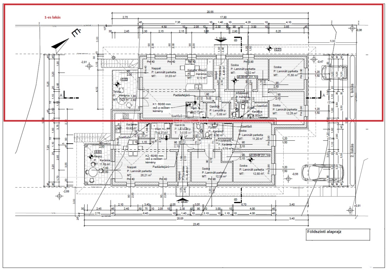 Pécel, kedvelt Levendulás lakóparkjában, eladó egy nettó 101,46 m², bruttó 110,56 m² alapterületű, 2 lakásos lakóépület 1-es lakása.