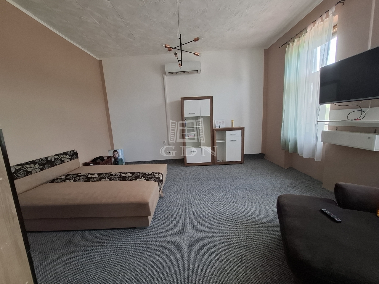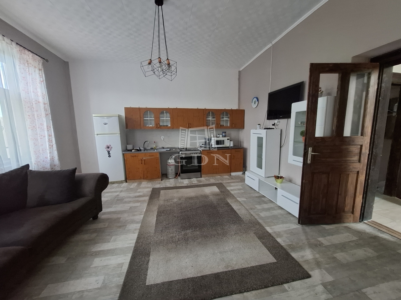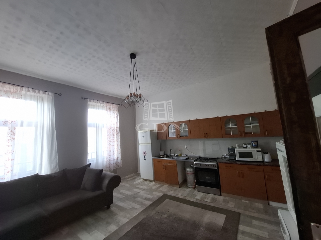 A felső szinten található két szoba és amerikai konyhás nagy nappali, valamint egy fürdőszoba (ami nemrég lett felújítva).
