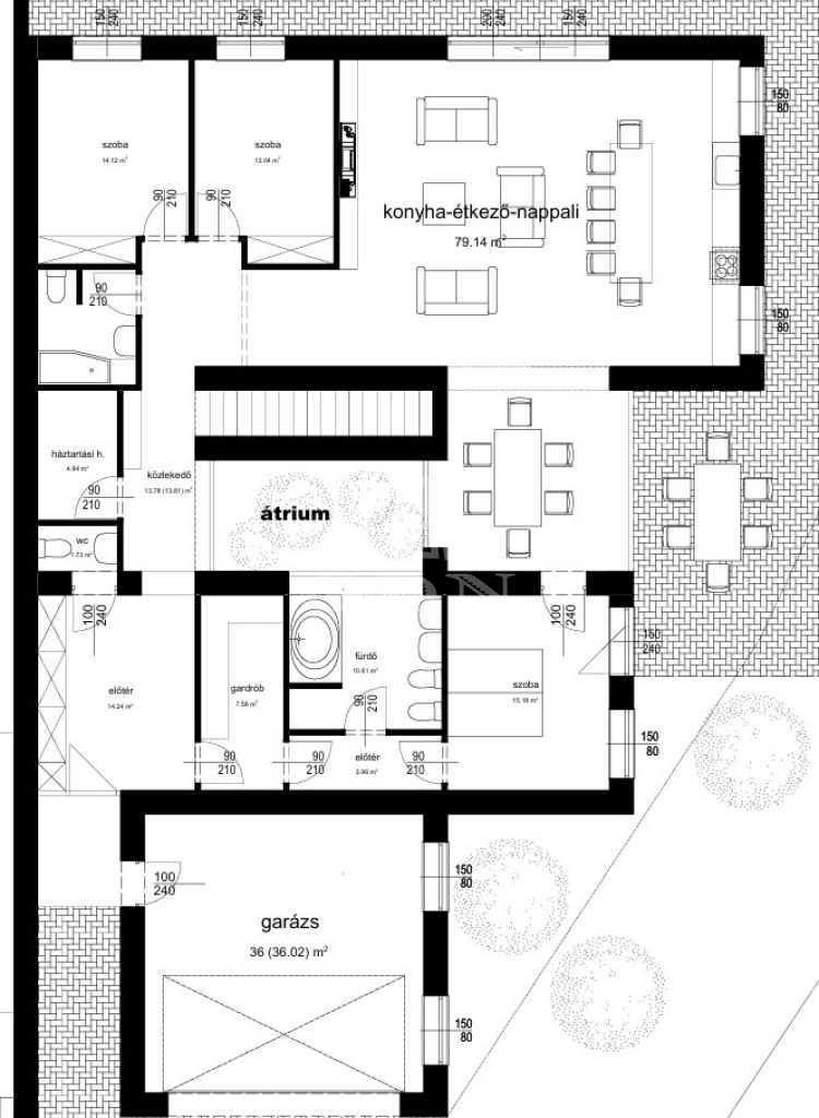 Az átrium ennek a villának a megálmodott extra része, egy különlegesség, nemcsak exkluzív látványt nyújt, hanem természetes fényt juttat az épület belső tereibe is.