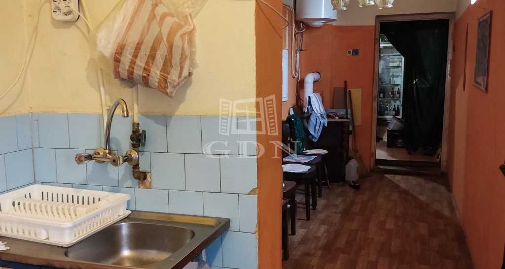 A pult mögötti részről jutunk a személyzeti részhez, ahol konyha, tároló, valamint személyzeti mosdó van.