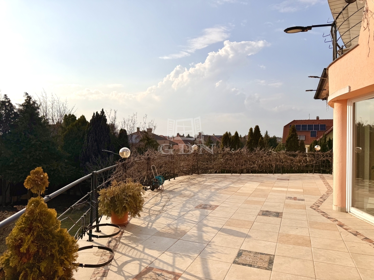 A házhoz tartozik egy 80 négyzetméteres panorámás erkély is, ahonnan gyönyörű kilátás nyílik a budai hegyekre.