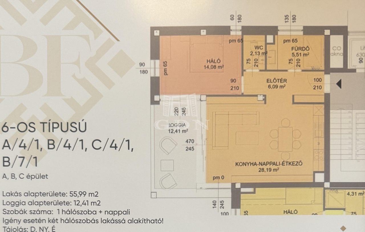 Az B/6-os típusú első emeleti lakás 113,66 négyzetméteres, tartozik hozzá 2 loggia amelyek alapterülete 20,22 négyzetméter. A 113,66 négyzetméteren amerikai konyha, 3 hálószoba, nappali, gardróbszoba, 2 fürdőszoba, valamint vendég WC is található. A loggián napozhat vagy akár egy jakuzzit is telepíthet. Az ingatlanhoz mélygarázsok és tárolok is megvásárolhatóak.