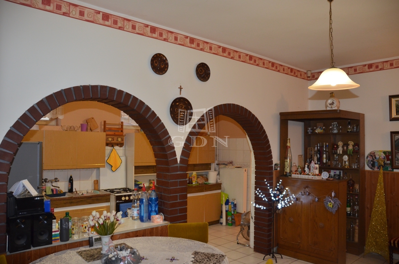 Nappali, amelyből boltíven át láthatjuk a konyhát