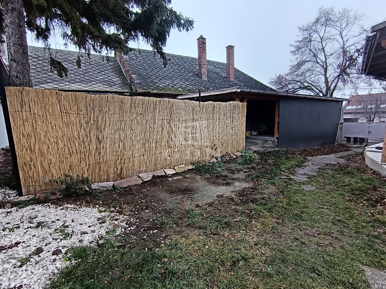 Az udvar osztott, közös tulajdon, vázrajzon feltüntetve, a hazsnálati megosztás. Ez a ház az udvarban az első, utcafronti épület, melyhez 1 db 40 nm nagyságú, fedett garázs is tartoziuk, ezen kívül egy pince is.
