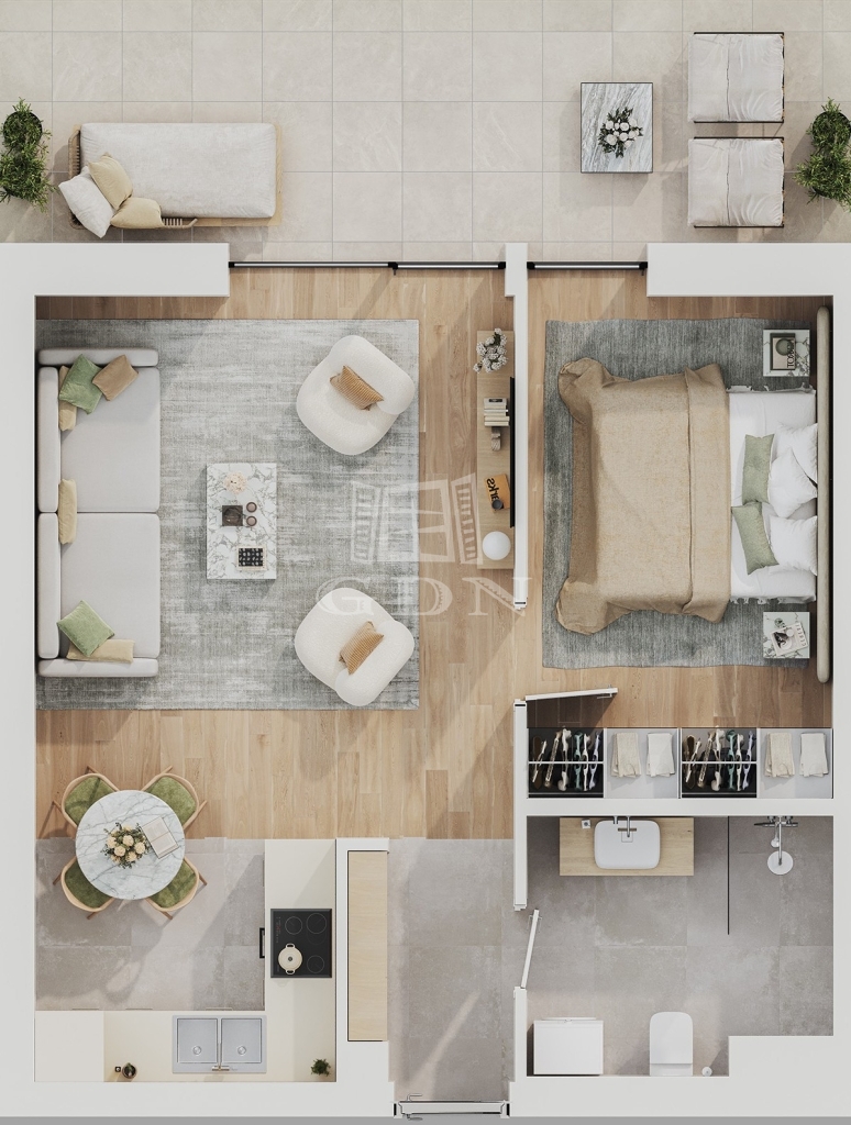 | 48 m2Space | 1 + 1 Rooms |