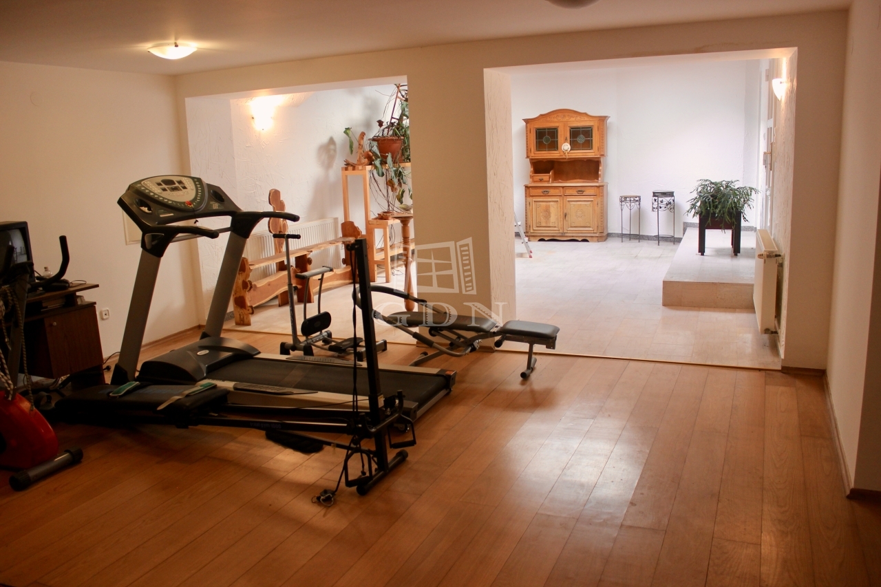 A háromszintes, igényesen megépített és folyamatosan karbantartott ház kialakítása rendkívül praktikus. A földszinten található egy előtér, WC, kamra/tárolóhelyiség, konyha, melyben beépített Miele gépek találhatóak, ezen felül egy étkezővel egybekötött nappali, egy gardrób szoba, fürdőszoba illetve egy hálószoba. Az emeleti lakótérben szintén megtalálható egy nappali rész, két hálószobával egy fürdőszobával és két beépíthető tetőtéri szobával. A szuterén szinten található a műhely, mosókonyha, egy világos télikert, fitness terem, zuhanyzó és külön WC, valamint egy gondosan kialakított wellness részleg szaunával. A ház szobáiból és a teraszról egyaránt szép kilátás nyílik a kertre, amely kellemes, zöld környezetet biztosít a mindennapokhoz.