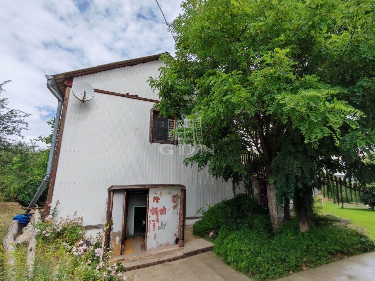 Az épület tetejét, hullámpala fedi.