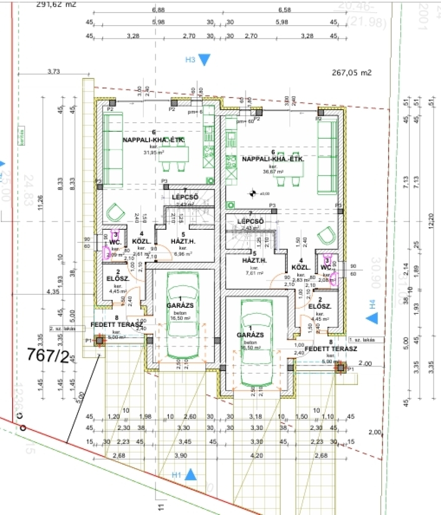 A saját telekrész 235 m², emellett garázs és térkövezett autóbeálló is tartozik az ingatlanhoz.