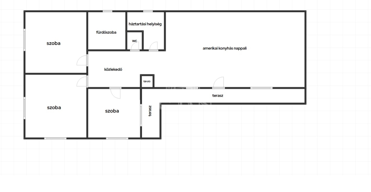 Amerikai konyhás nappali, közlekedő, 3 tágas hálószoba, fürdőszoba, vendég WC, háztartási helyiség került kialakításra.