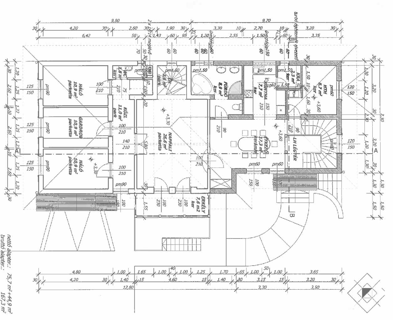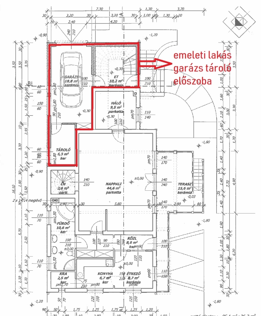 • A földszinten található a lépcsőház, tároló és a 20 m²-es garázs