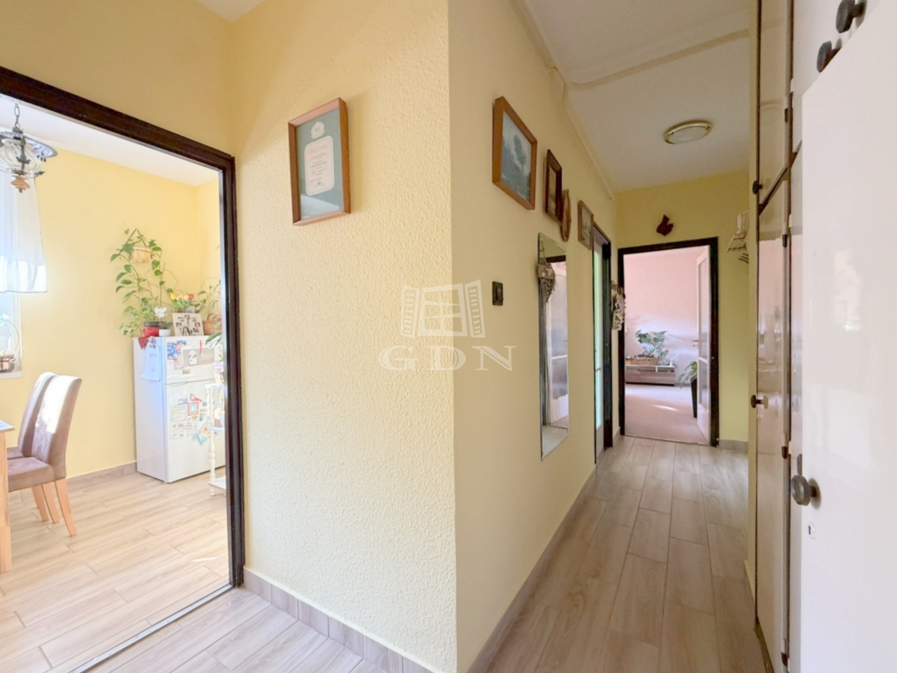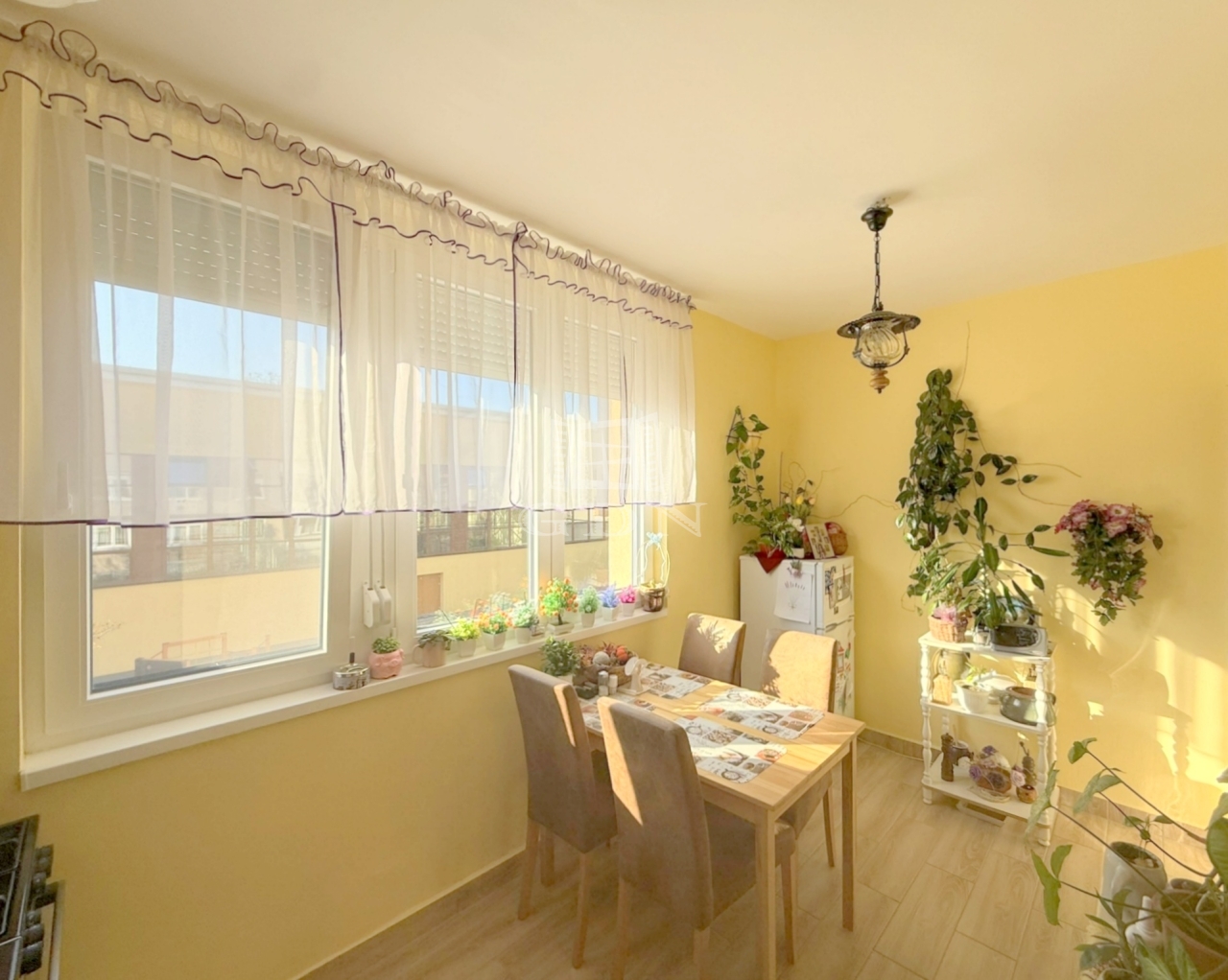 Az ingatlanban kedvező elosztásának köszönhetően találunk egy nagyméretű nappalit, egy külön nyíló hálót, egy nagy üvegfelülettel bíró, világos konyha - étkezőt, egy ebből nyíló spejz helyiséget, egy zuhanyzóval felszerelt fürdőt, egy külön helyiségben található toalettet, valamint egy tágas, előtérrel egybekötött folyosót, melyben nagyméretű szekrény biztosít helyet a nem minden nap használt dolgainknak.