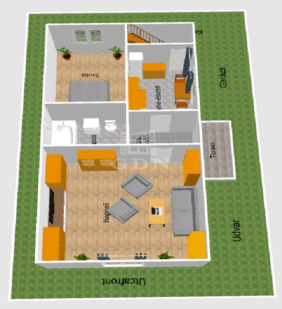 Stabil fedél szék, cserép fedéssel, a tetőtér beépíthető, mellyel növelhető a nettó alapterület!