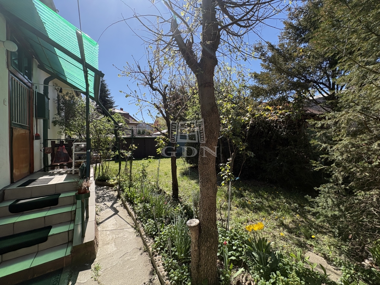 Tartozik hozzá pince, padlás, előkert, sziklakert és kocsibeálló.