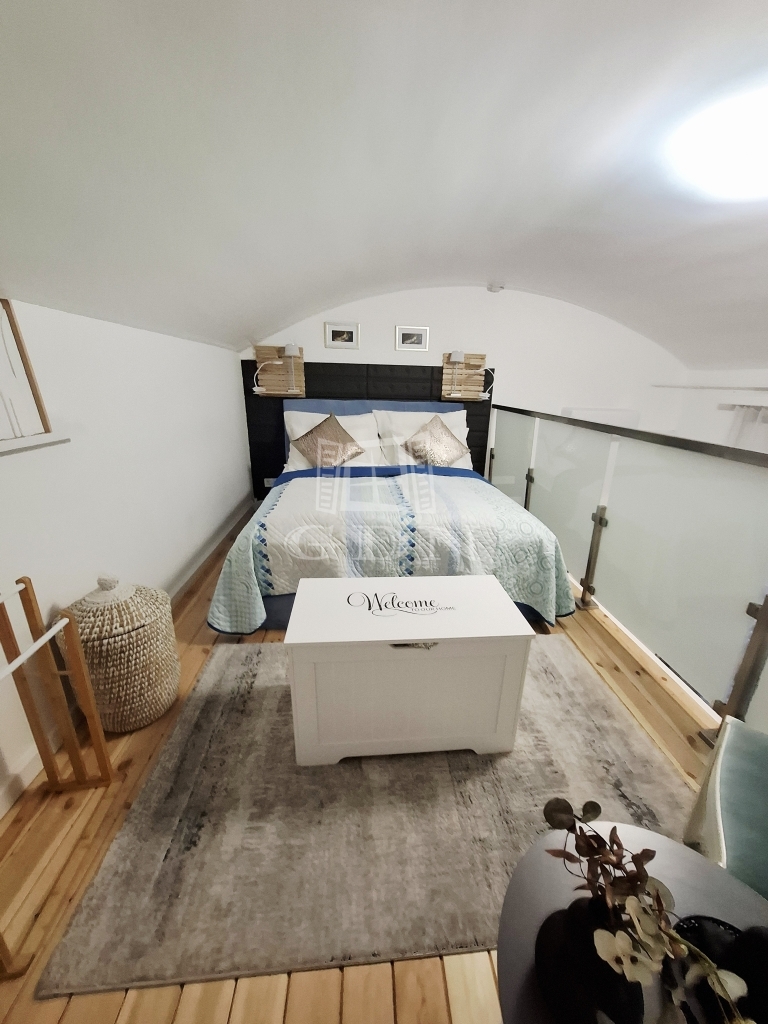 A lakás 5 méteres belmagasságának köszönhetően a nappaliban teljes értékű állógaléria került kialakításra, amely jelenleg külön hálószobaként funkcionál.