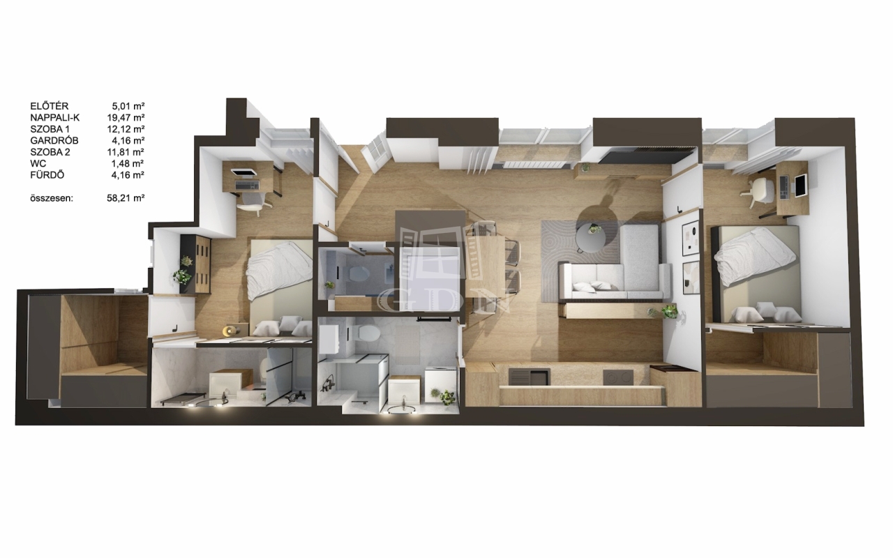 58 m2Alapterület 3 Szoba