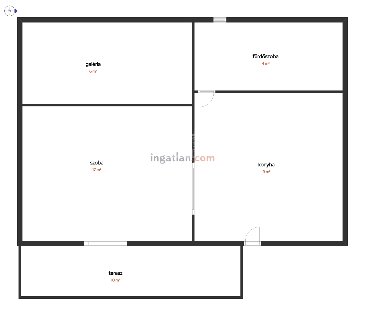 30 m2Alapterület 1 Szoba