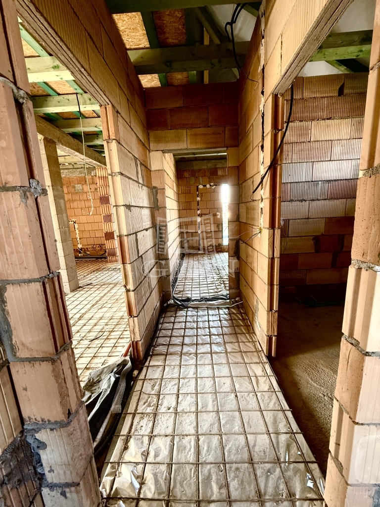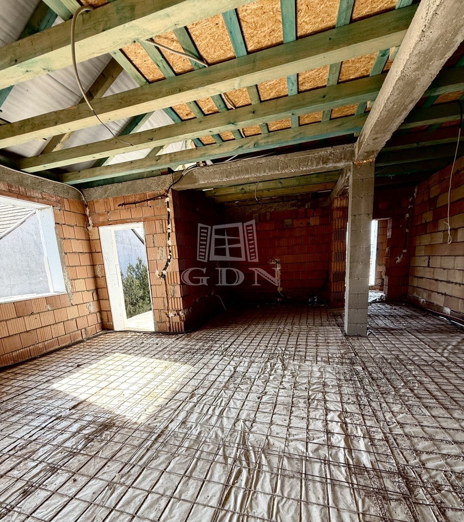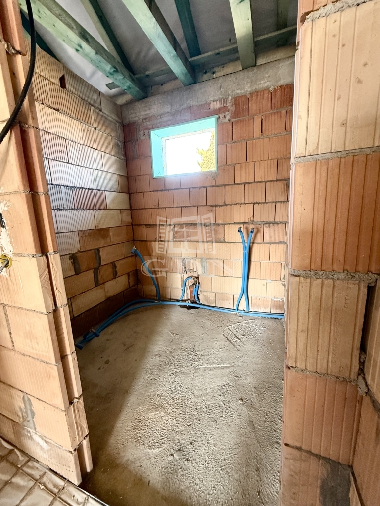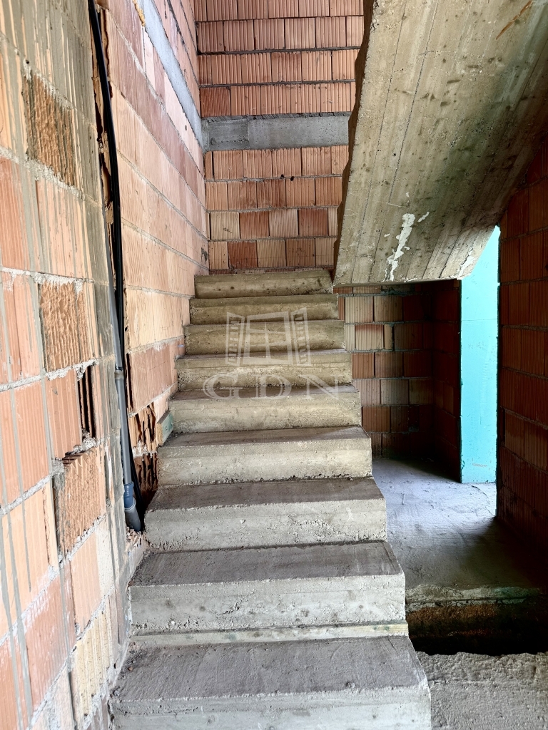 A képeken az emeleti lakás látható, ami külön lépcsőházból megközelíthető. A telek két utcára nyílik, így a két lakás és a hozzájuk tartozó telekrész is külön utcáról bejáratos.