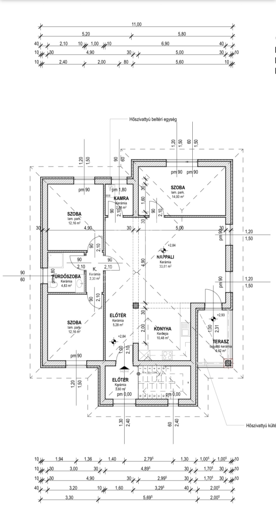 • amerikai konyhás nappali + 3 külön nyíló hálószoba