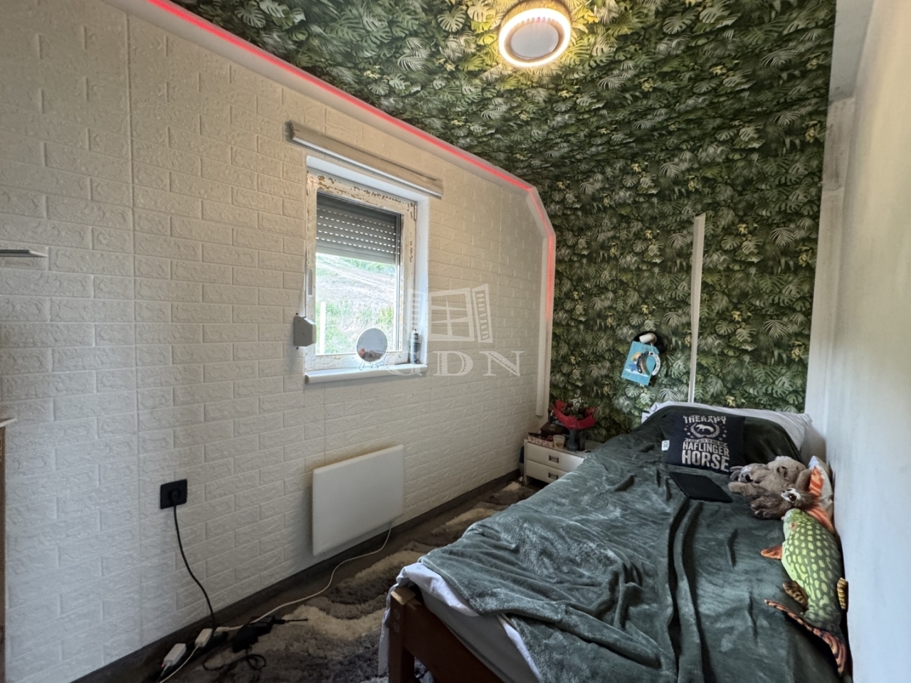 A földszinten konyha, fürdőszoba található, a tetőtéri részen pedig 2,- egymásból nyíló szoba és erkély került kialakításra.