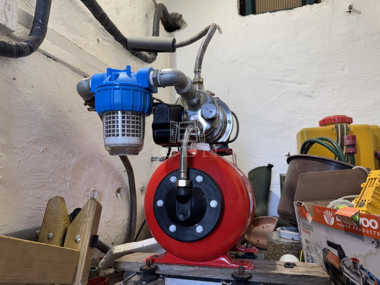 A szennyvíz elvezetése derítővel megoldott. A használati vizet egy, a terasz alatt található esővíz gyűjtő biztosítja házi vízművel, az ivóvíz ellátás egyelőre nem megoldott.