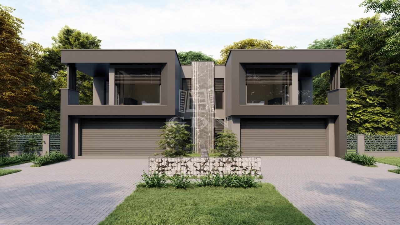 1014 m²-es telken két, egymás mellett elhelyezkedő lakás kerül átadásra, modern kialakítással és fiatalos, jól átlátható terekkel.