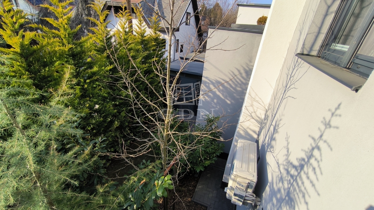 A nappali déli és nyugati tájolású, a garázs fölötti jakuzziból a dunaparti fák felett lenyugvó napban gyönyörködhetünk.