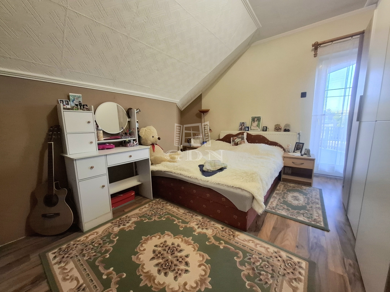 tetőtérben: három külön bejáratú hálószoba ebből kettő erkélyes, fürdőszoba sarokkáddal, gardrób, közlekedő dolgozó sarokkal.