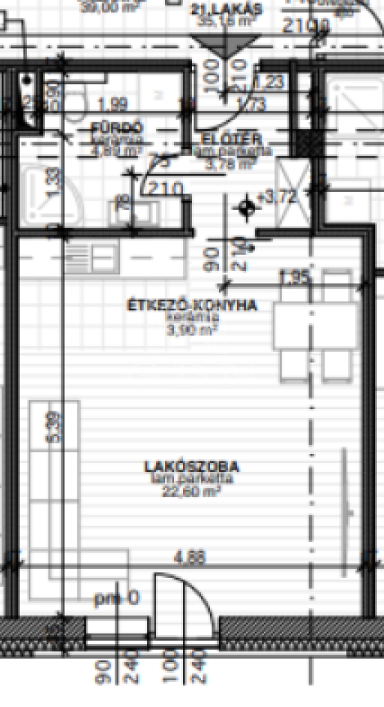 A feltüntetett ár földszint 9-es lakásra vonatkozik, 35,19 m2 lakótér, helyiségei: amerikai konyhás nappali, előtér, fürdőszoba.