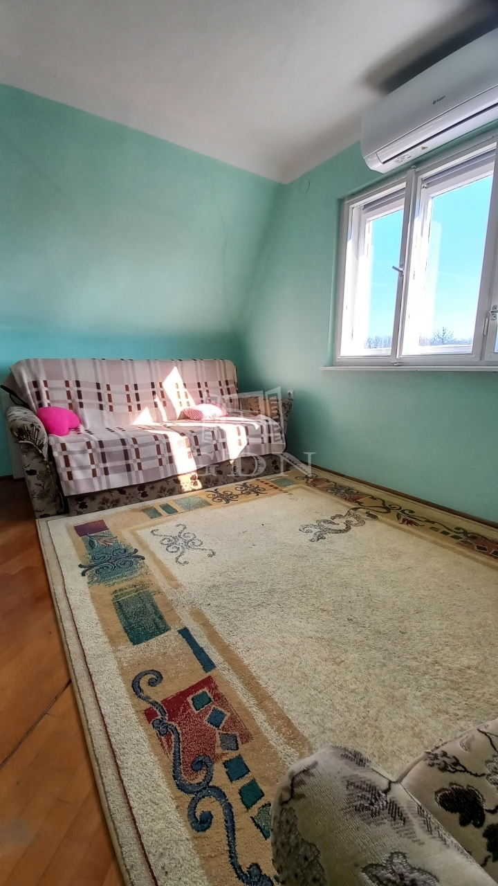A hétvégi ház 2 szobás kialakítású, az alsó szinten egy nappali, fürdő és konyha kapott helyet, míg a padlástérben egy körbejárható hálószoba található, amely két kisebb, különálló hálóként is funkcionálhat. A fűtésről vegyestüzelésű kályha gondoskodik, amely gazdaságos és hatékony megoldás. Azonban a hálószobába egy hűtő-fűtő klímát is beépítettek. A ház kívülről 4 cm-es nikecellel hőszigetelt, a padláson 10 cm-es szigetelés található. A fürdőszobát néhány éve újították fel, a vízellátást a kristálytiszta vízzel, korlátlan vízhozammal rendelkező fúrt kút szolgáltatja. Áramlás kapcsolós házi vízmű és villanybojler segíti a komfortot. Mosógép és mosogatógép is ráköthető a rendszerre.