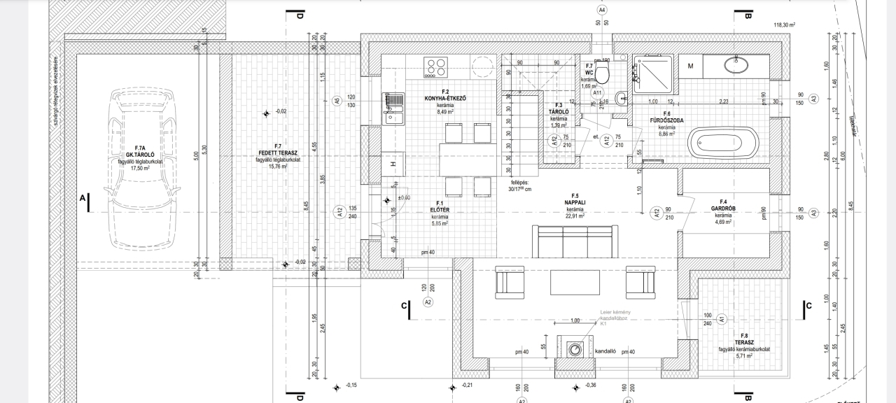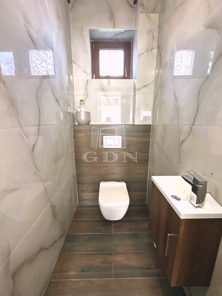 A belső tér letisztult, mégis karakteres: tömör fa nyílászárók, kandalló kialakításának lehetősége, elektromos redőny és riasztórendszer kiépített vezetékezéssel. Az önálló garázs biztosítja a kényelmes parkolást és a praktikus tárolást, így minden nap egyszerű és rendezett marad.