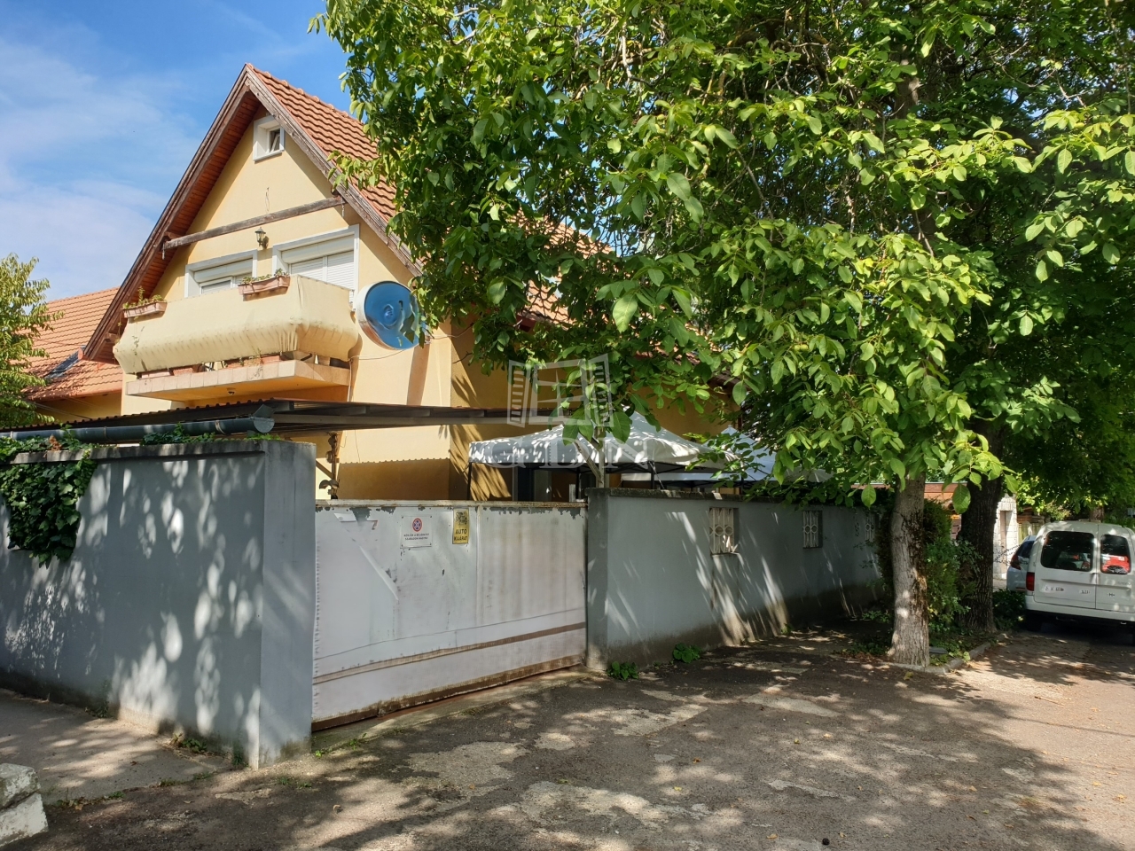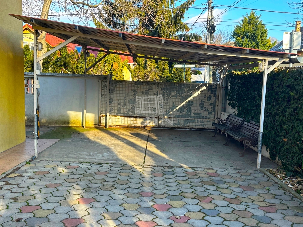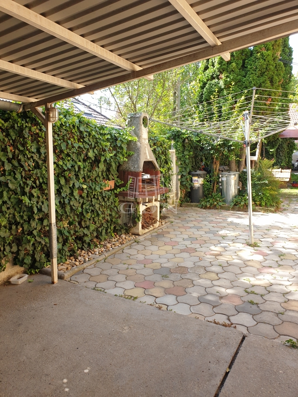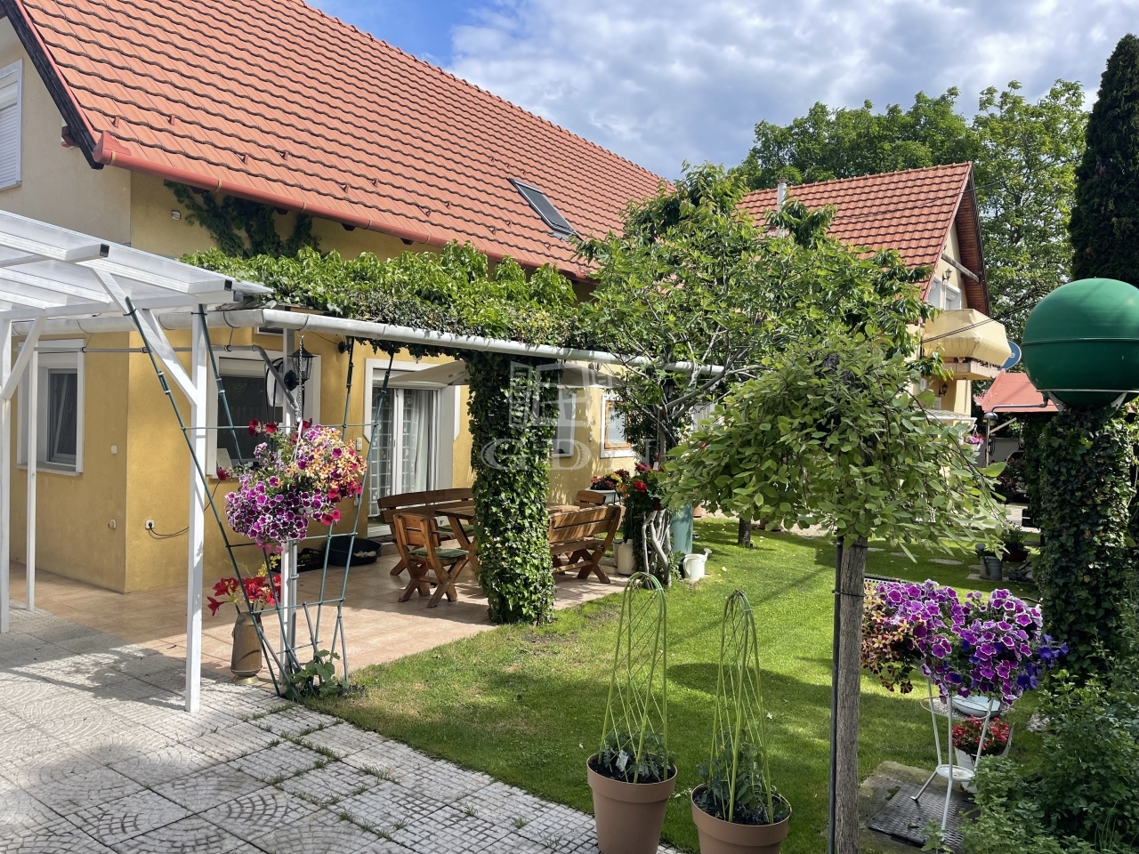 Gondozott kert, automata öntözőrendszerer, ciszterna, kút, 4állások fedett kocsibeálló.
