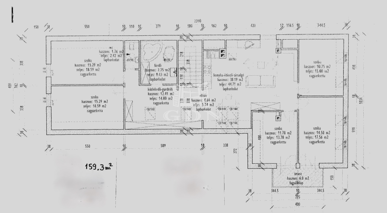 - 5 szoba (12,15,11,15,15 nm)