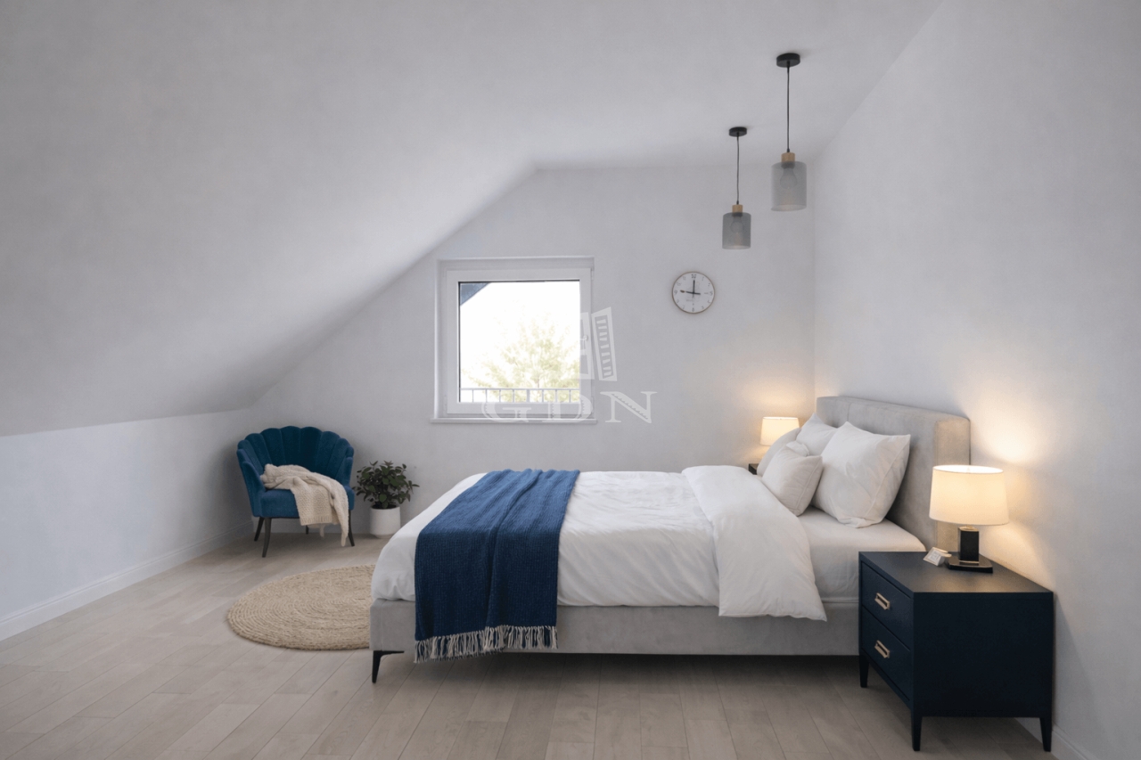 Az egyik hálószobához gardróbhelyiség is kapcsolódik, emellett több praktikus tároló is rendelkezésre áll.