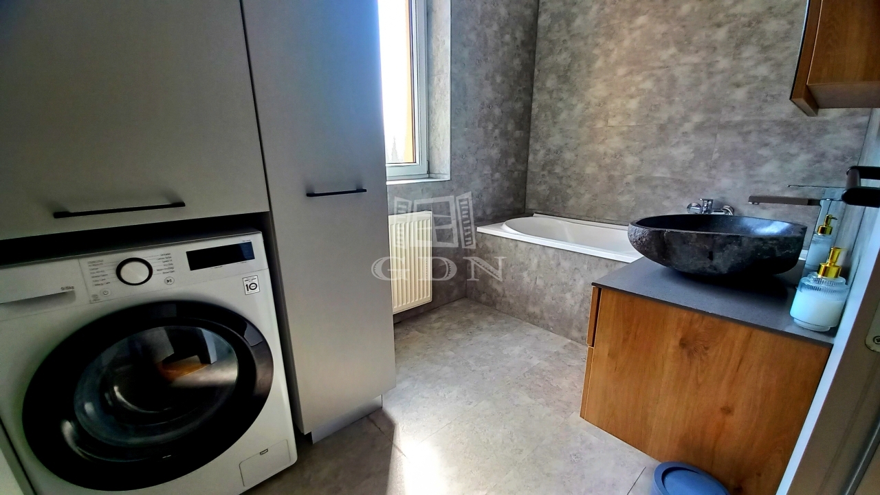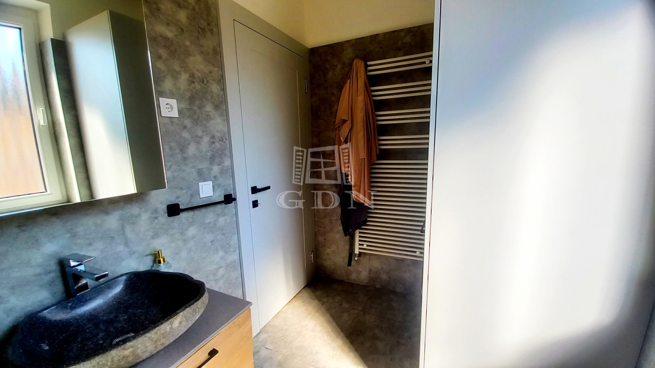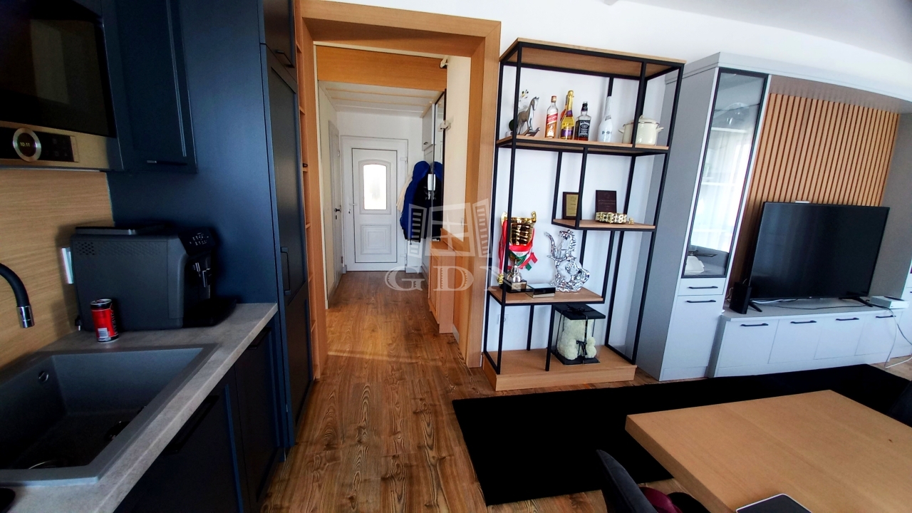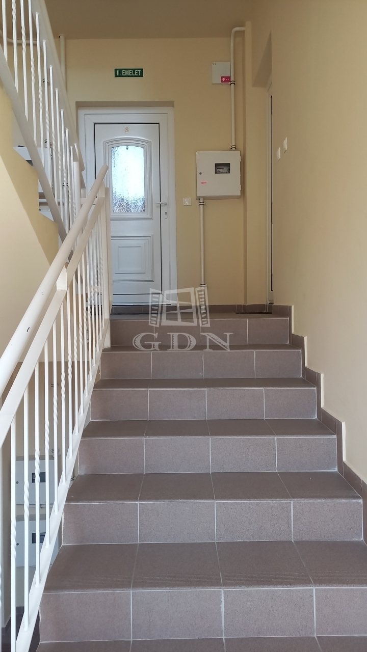 Az 54 négyzetméter alapterületű, második emeleti, gázfűtéses ingatlan modern kialakítású, könnyen megközelíthető, gyakorlatilag pár lépésnyire a közelben lévő két élelmiszerbolthoz (Spar és Coop).