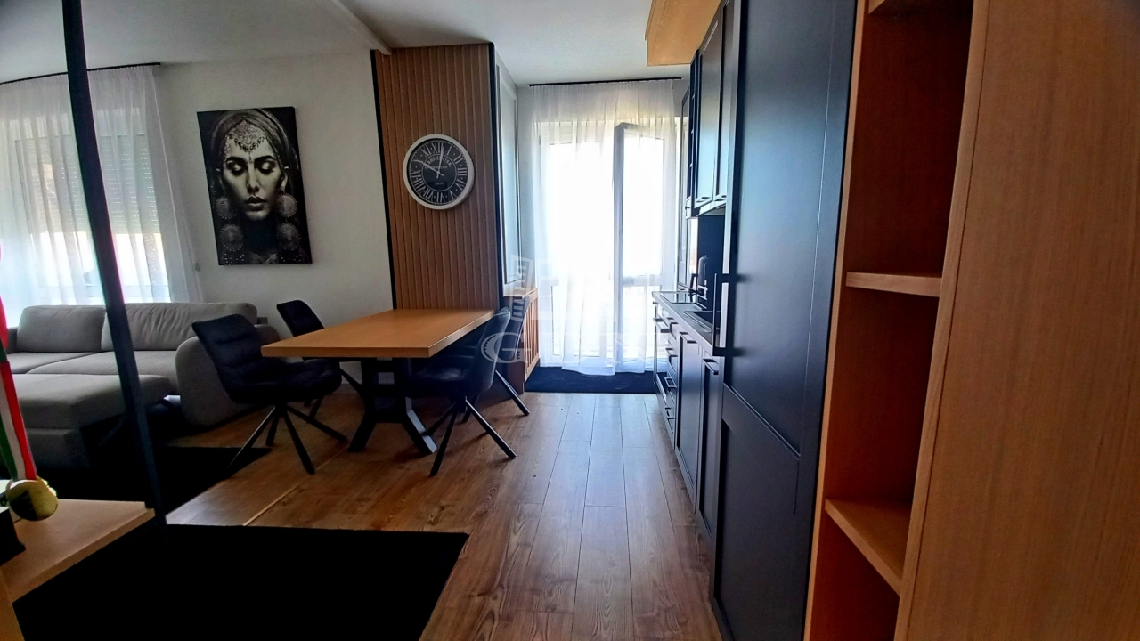 A lakásban egy nappali-étkező-konyha és egy hálószoba található. A fürdőszoba és a WC külön helyiségben van. Prémium burkolatok, magas minőségű konyhabútor és beépített szekrény, valamint mindkét szobában hűtő-fűtő klíma szolgálja a még nagyobb komfortérzetet.