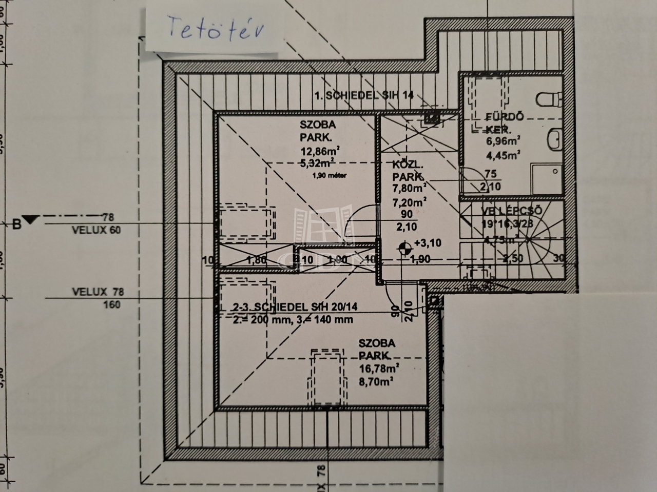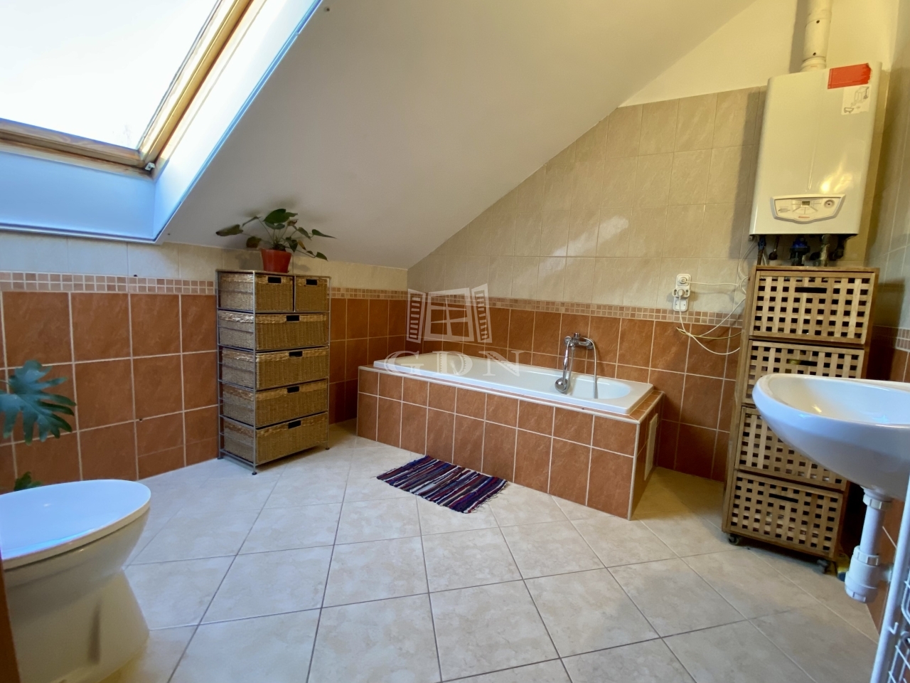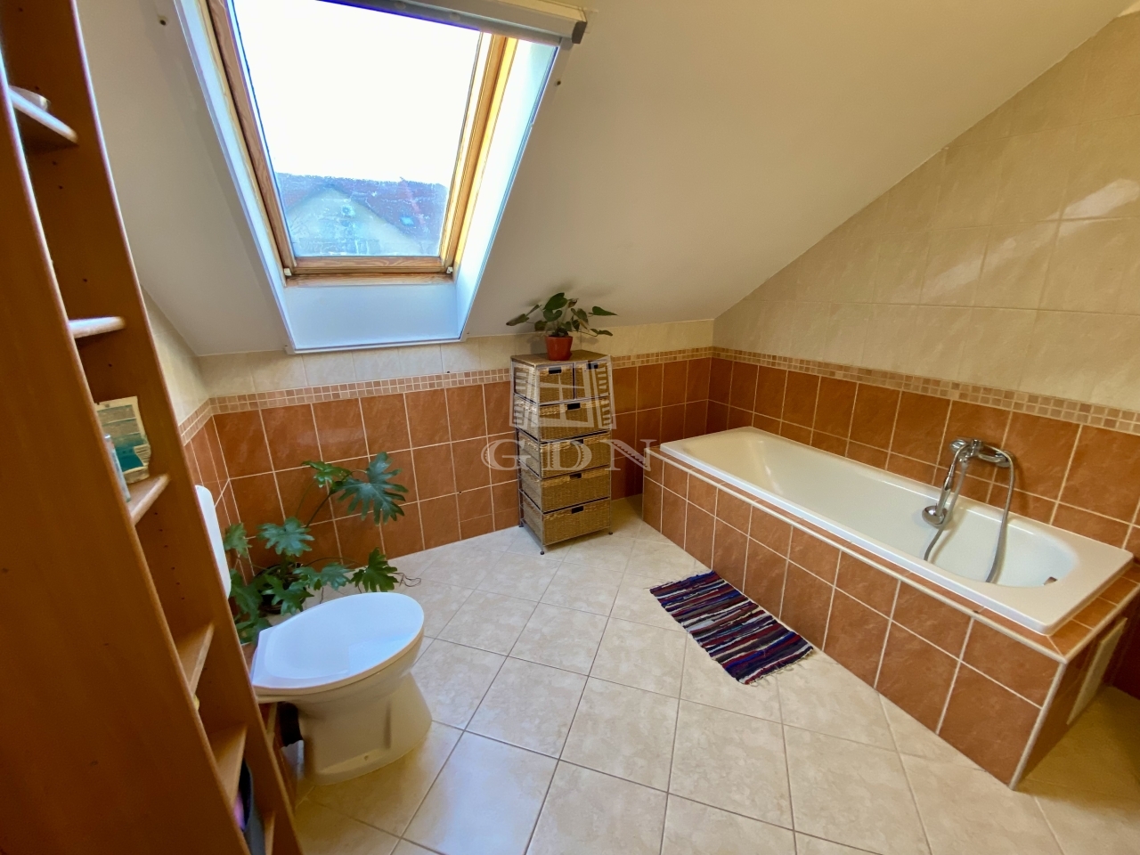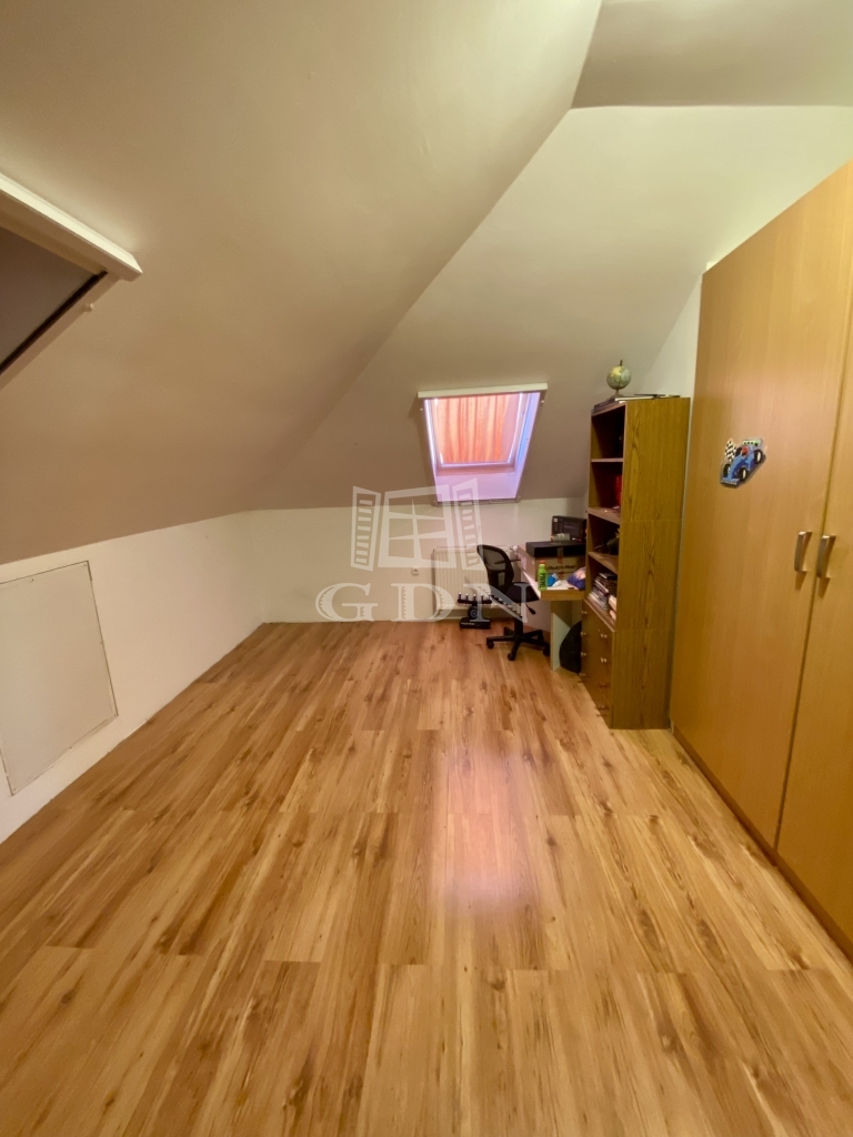 Az emeleten további két szoba (12,8 és 16,7 m²), egy nagyobb fürdőszoba (6,9 m²) és egy praktikus gardrób kapott helyet.
