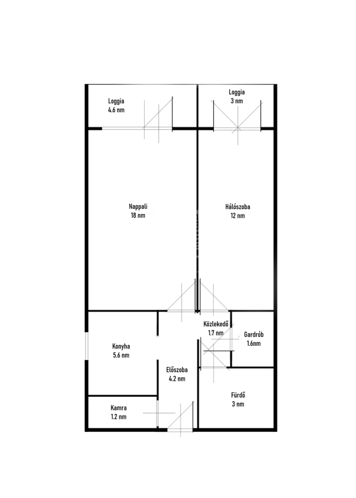 | 55 m2Alapterület | 1 + 1 Szoba |