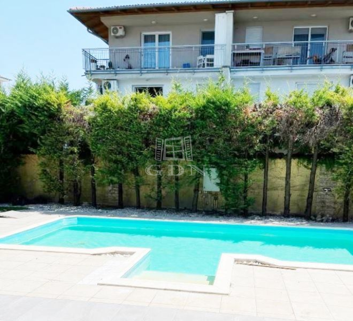 A 6 lakásos társas ház rendezett, közös használatú udvarán található medence, és napozó terasz. A lakásokhoz 2 saját autóbeálló tartozik, melyek megvásárlása kötelező, ára 2x4.000.000,- Ft.