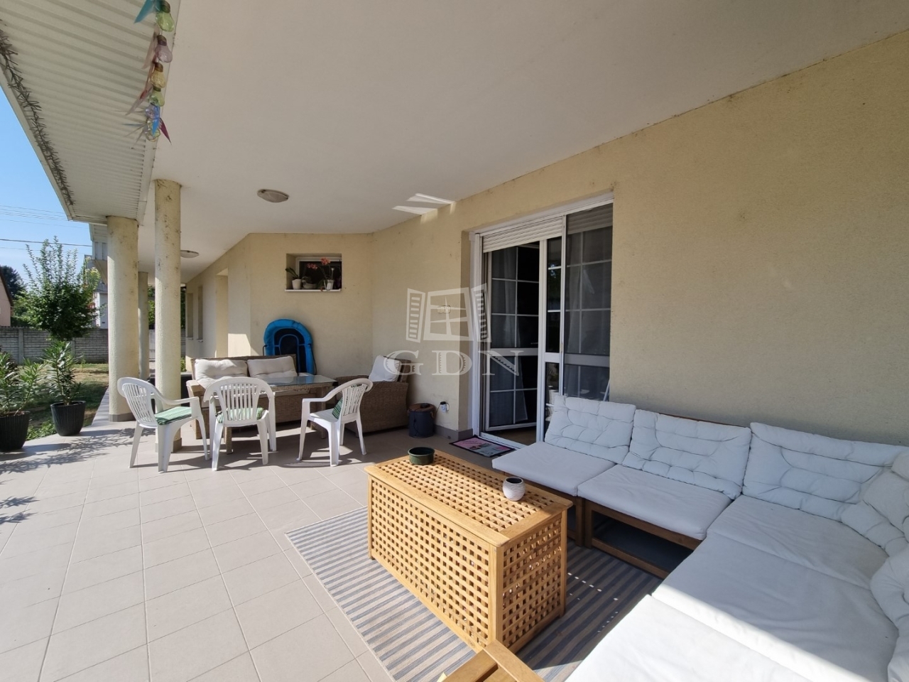 - 200 m2 hasznos alapterület, folyosó, nappali-konyha-étkező, 4 tágas hálószoba gardróbbal, 3 ezek közül saját fürdőszobával, vendég WC, mosókonyha, gépészeti helység, 24 m2 fedett terasz, kétállásos garázs