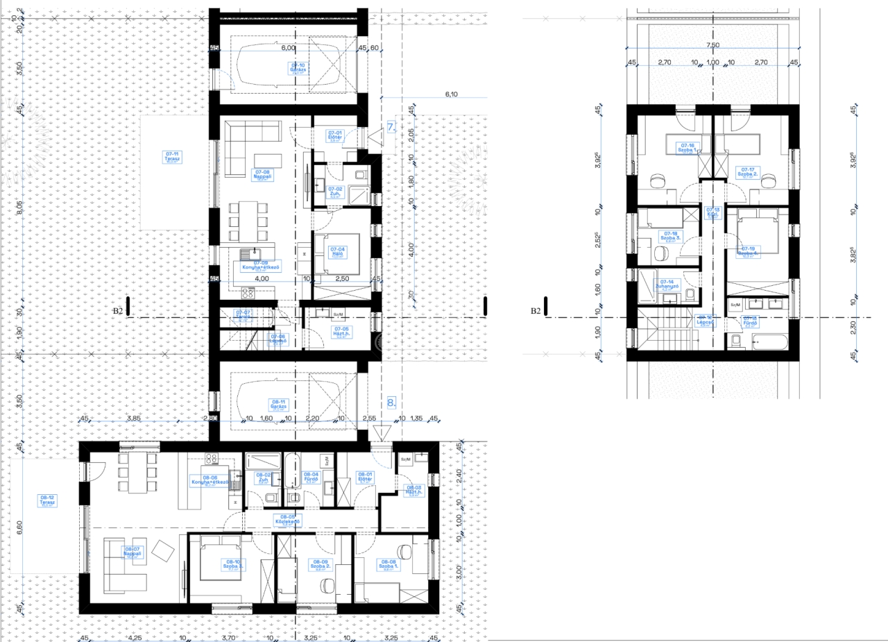 - 4 db földszinti lakás garázzsal + terasszal + saját kertrésszel.