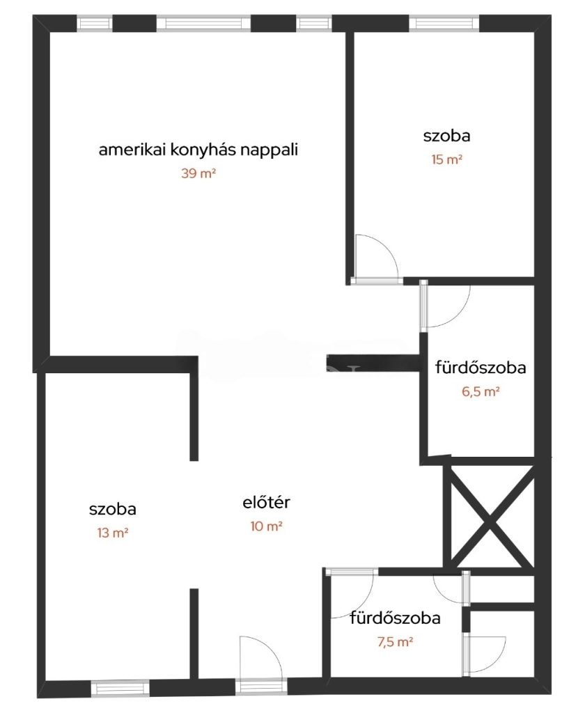 -Két fürdőszoba (mindkettő saját WC-vel, az egyik zuhanyzós, a másik kádas)