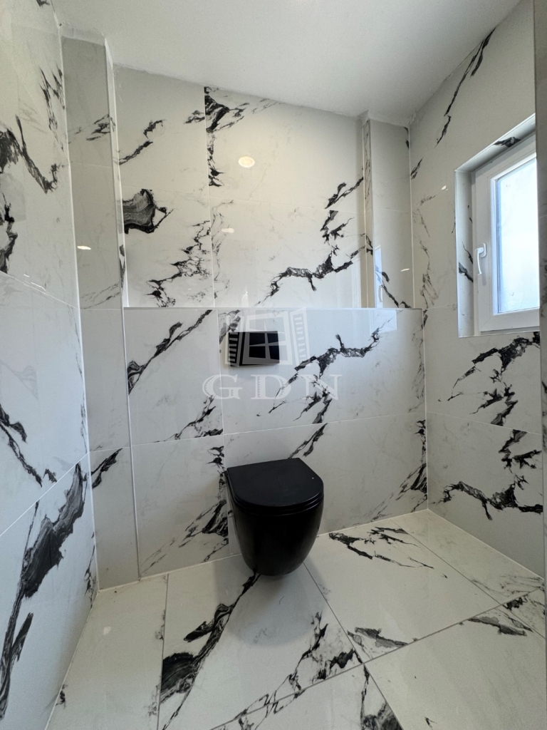 Egy gépesített, közel 50 m2-es amerikai konyhás nappali, egy szülői háló gardróbbal és fürdőszobával, kettő hálószoba, fürdőszoba, kazánház és egy nagyobb, mint kétállásos garázs lett kialakítva. A házhoz kapcsolódik egy 16m2-es fedett terasz is.