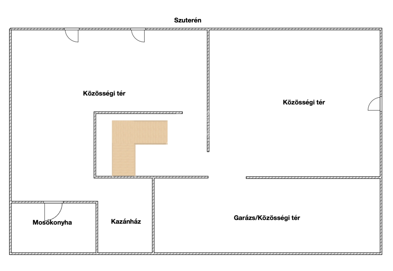 A ház igazi különlegessége a szuterén, ahol egy fűthető, hangulatos klubhelyiség teremt lehetőséget arra, hogy rossz időben is legyen helye egy nagyobb családi vagy baráti összejövetelnek. Itt található továbbá a mosókonyha és a gépészeti helyiség is, minden a maga logikus helyén.