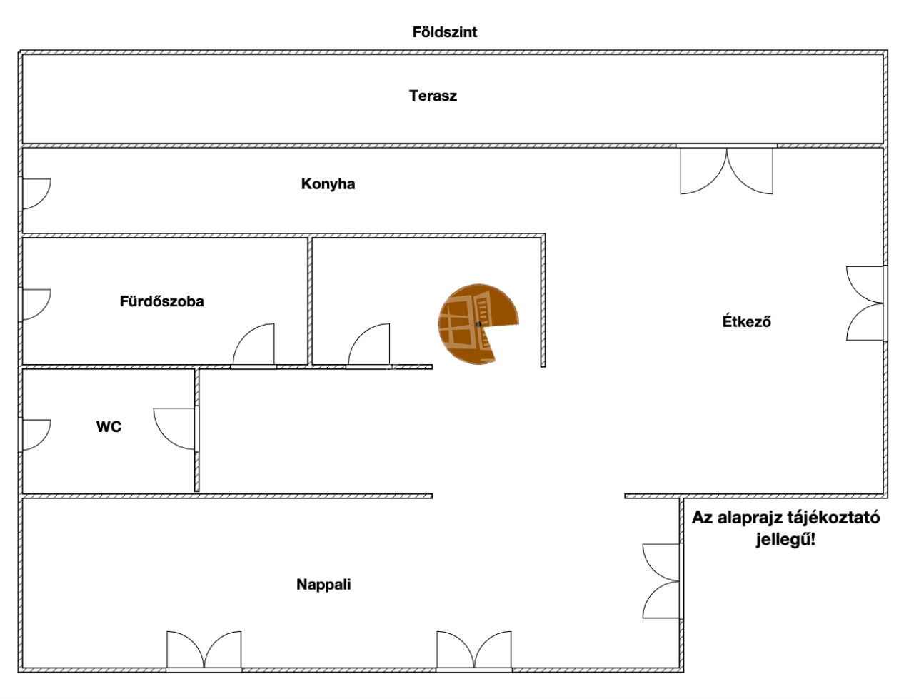A földszinten egy világos, kertkapcsolatos konyha–étkező fogadja az érkezőket, amely közvetlenül kapcsolódik a nagy méretű nappalihoz – ez a tér a családi élet természetes központjává válik. Itt kapott helyet a sarokkáddal felszerelt fürdőszoba is, valamint egy külön helyiségben kialakított WC és bidé.