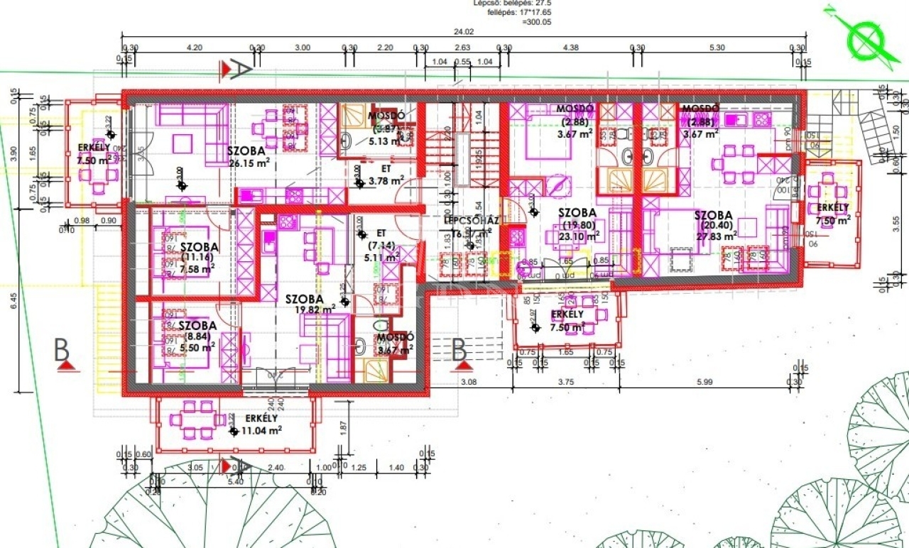 Mindkét lakás típusból 4-4 került kialakításra, az egyterűek 27-32 m2, míg a hálószobásak 38-47 m2 közti alapterülettel rendelkeznek.