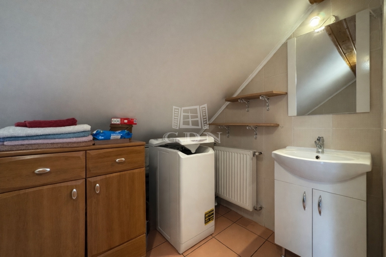A tetőtéri rész (~50m2) külön bejárattal rendelkezik. Ezen a szinten egy fürdőszoba, WC és egy egy-légterű amerikai konyha nappali található, melyben egy elszeparált haló rész is helyet kapott.