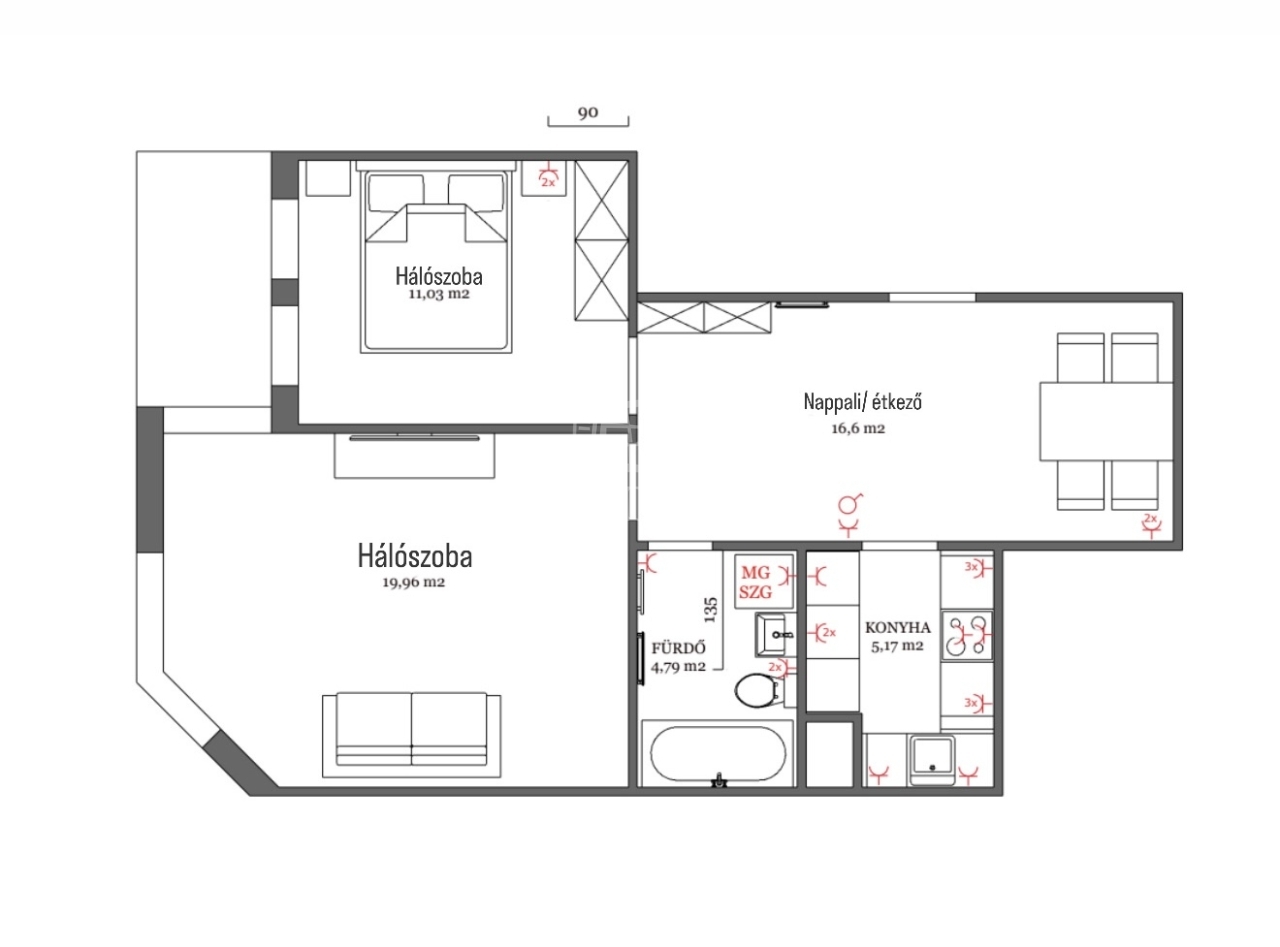 | 61 m2Alapterület | 3 Szoba |