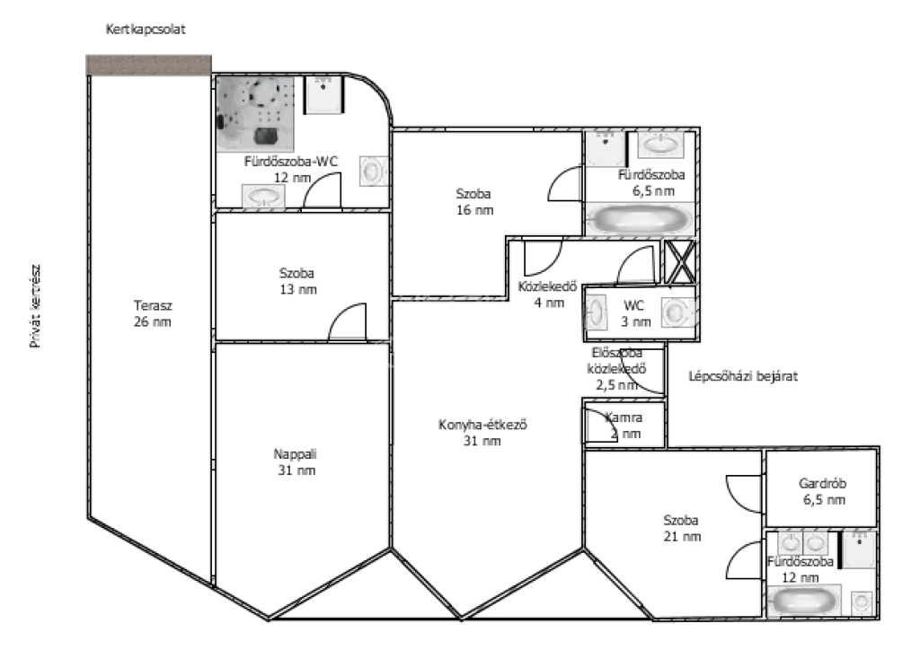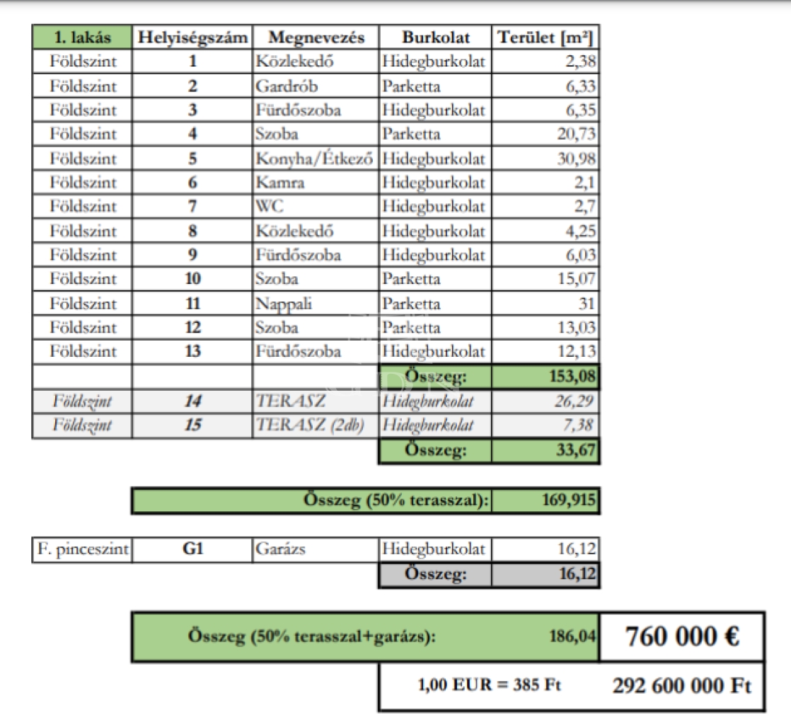 - lakás nettó alapterület: 153 m2,