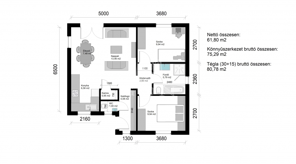 A tervrajzok igény szerint módosíthatók, legnépszerűbb típusházaink 75-120 nm választhatók.